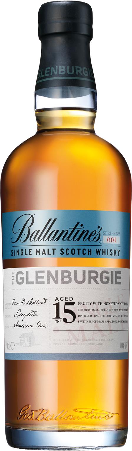 סינגל מאלט משובח המתיישן 15 שנים בחביות עץ אלון אמריקאיות מבית מזקקת גלנבורג'י, אחת המזקקות הדומיננטיות בבלנד המפורסם של בלנטיינס. בסדרה זו, שכוללת סינגל מאלטים בני 15 ממזקקות מילטונדף וגלנטאוצ'רס, נותנים לנו הצצה למרכיבים העיקריים ביותר בבלנטיינס האהוב עלינו. גלנבורג'י 15 מציג ארומה לתפארת של סירופ זהוב, ענבים לבנים, מאלט, תפוחי בישול, מרציפן ודגנים מתוקים. כמו כן, ניתן להבחין בניחוחות אגס מבושל ורמיזות סוכר חום הנחשפים בהדרגה. התחושה בחך היא עושר חושי של קרמל, שוקולד לבן, וניל, זנגביל ופלפל לבן. על אלה "מנצחות" מנדרינה, ליצ'י ופירות כהים עמוקים המייצרים יחדיו מנעד טעמים עשיר. הפיניש הוא סיומת קצרה ומענגת עם איתותים של תבלינים בחך.