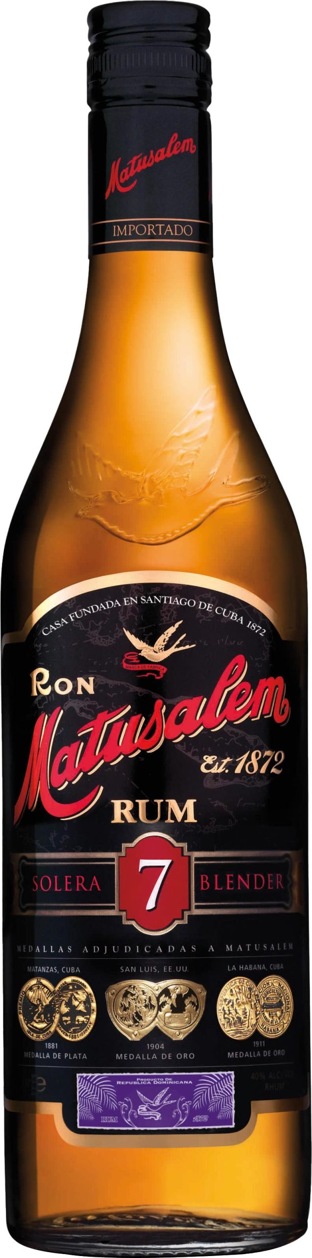 רום מיושן בן 7 שנים המגיע אלינו מהרפובליקה הדומיניקנית, אשר נוצר במקור בסנטיאגו שבקובה. המתכון של הסולרה 7 הוא המתכון המקורי משנת 1872. זהו רום שהתיישן בממוצע 7 שנים בחדרי היישון של מתוסלם, בשילוב של חביות חדשות וישנות. הרום לא עובר סינון ונקי מתוספות של צבע או טעמים מלאכותיים. הארומות המיוחדות ואחוז הסוכר הנמוך ברום (1.5 גרם לליטר) הופכים אותו לרום המועדף ע''י ברמנים רבים בכל העולם. צבעו זהוב מהגוני עםגווני נחושת ובאף ניתן להבחין בארומות חזקות של עץ, פירות טרופיים ווניל, לצד ארומה נעימה של בננה בשלה. בפה הרום בעל גוף מלא, טעמי בננה מקורמלת, וניל וטופי. הסיומת חלקה ונעימה. רום נהדר עם אחוז הסוכר הנמוך ביותר מסוגו, נהדר בקוקטיילים או לשתייה כמו שהוא עם קרח.